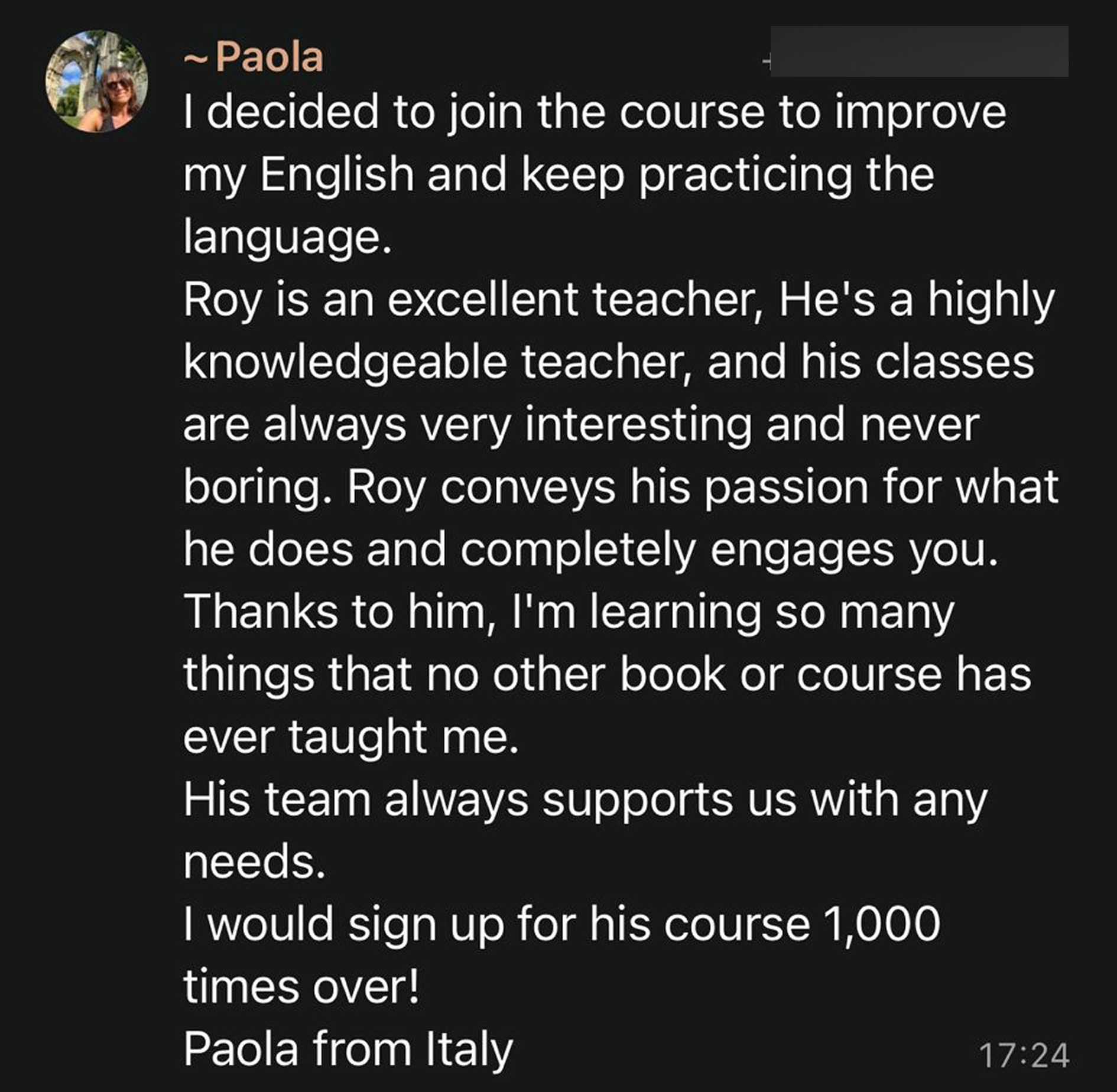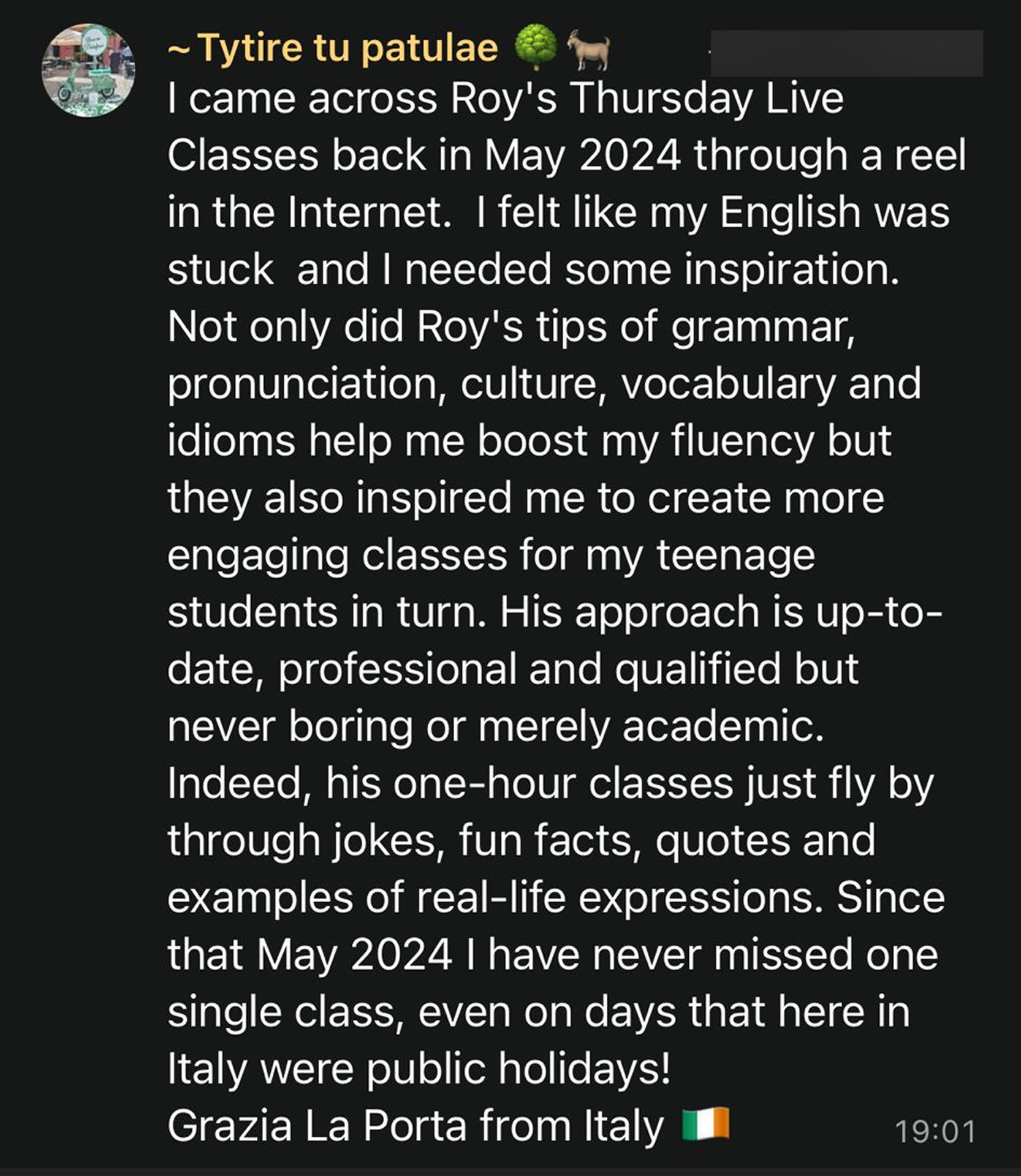 All Roy’s live sessions, neatly archived, with new videos every month. Pronunciation drills, culture lessons, slang deep-dives, grammar that actually helps in real life.